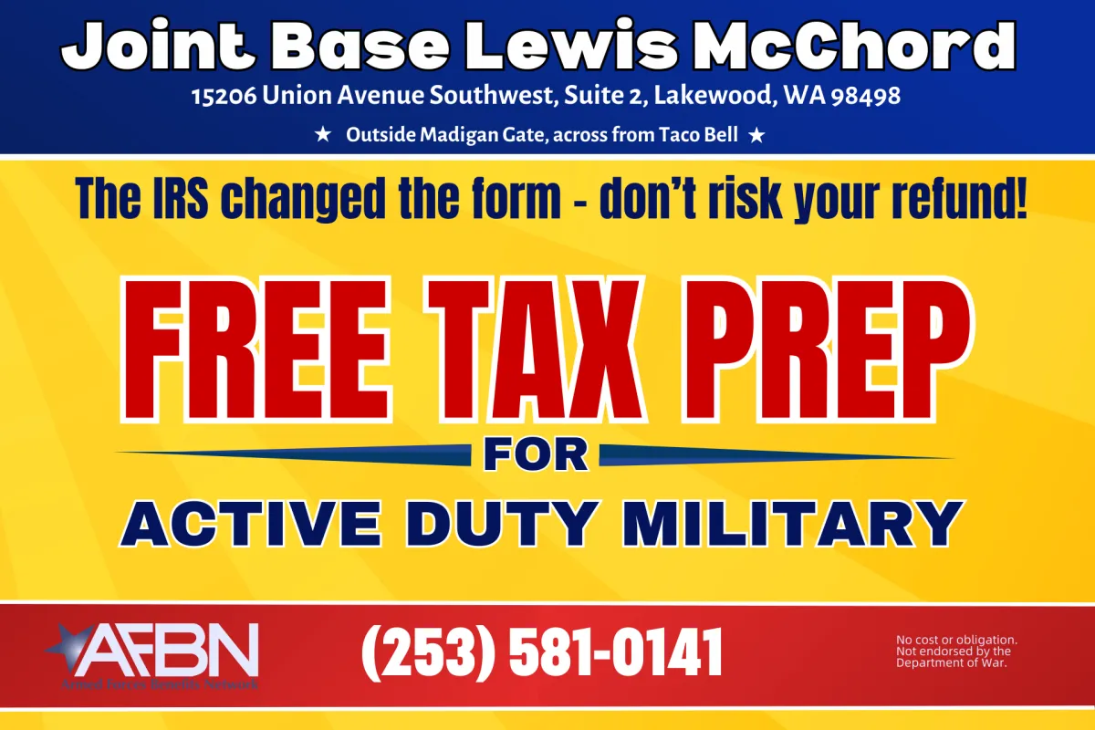 Yes. If you are active duty we prep and file your taxes for free. There is no obligation or fees. Filing your taxes with AFBN - JBLM is easy and convenient.